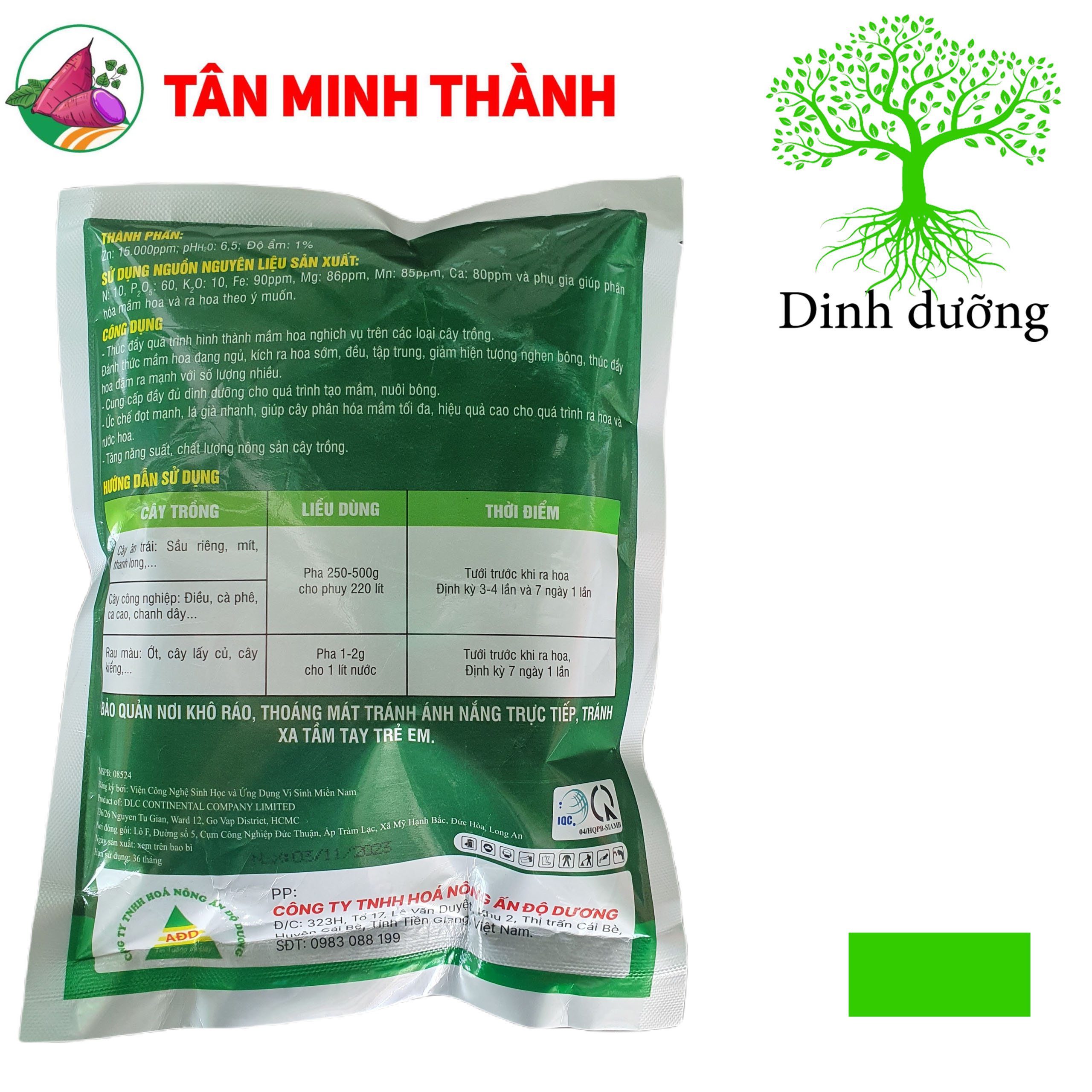 Đạm 10%; Lân 60%; Kali 10%; Kẽm 15.000ppm ; Sắt: 90ppm; Mangan 86ppm; Canxi 80ppm và phụ gia giúp phân hóa mầm hoa và ra hoa theo ý muốn.