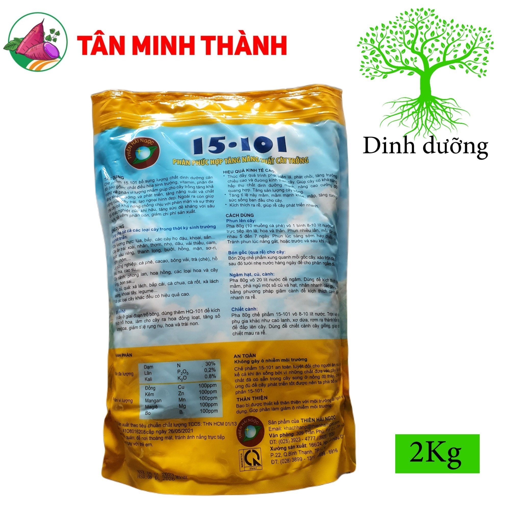 Pha 80g chế phẩm 15-101 vô 8-10 lít nước. Trộn với phụ gia khác như cao lanh, xơ dừa, rơm rạ thành hồn để đắp lên cây. Dùng để chiết cành cây giống, giúp chiết mau ra rễ