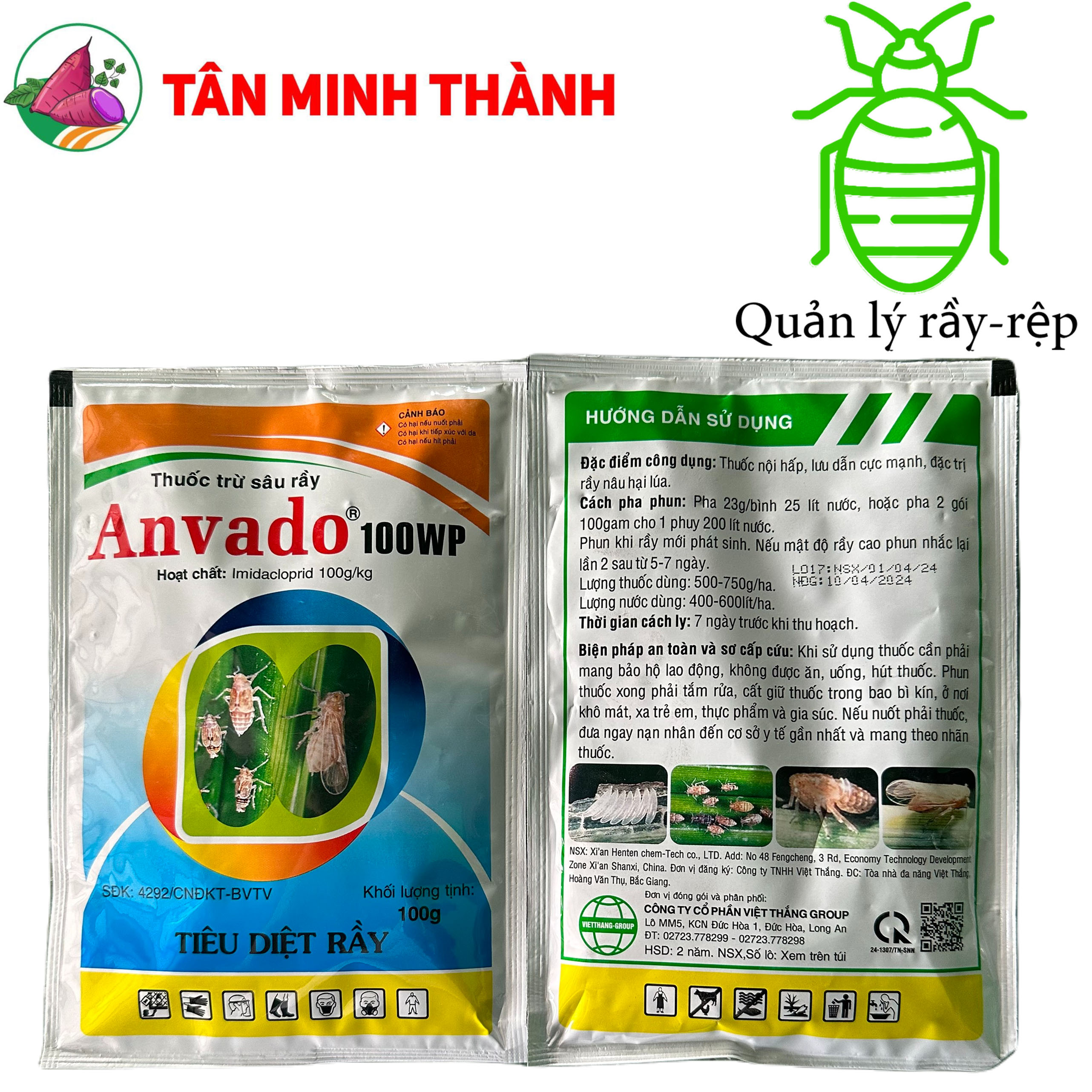 Anvado 100wp là thuốc nội hấp, lưu dẫn cực mạnh, được sử dụng đặc trị rầy nâu hại lúa. Ngoài ra, sản phẩm còn được sử dụng để trừ rầy xanh, rầy lưng trắng, bọ trĩ, rệp muội, rầy mềm.