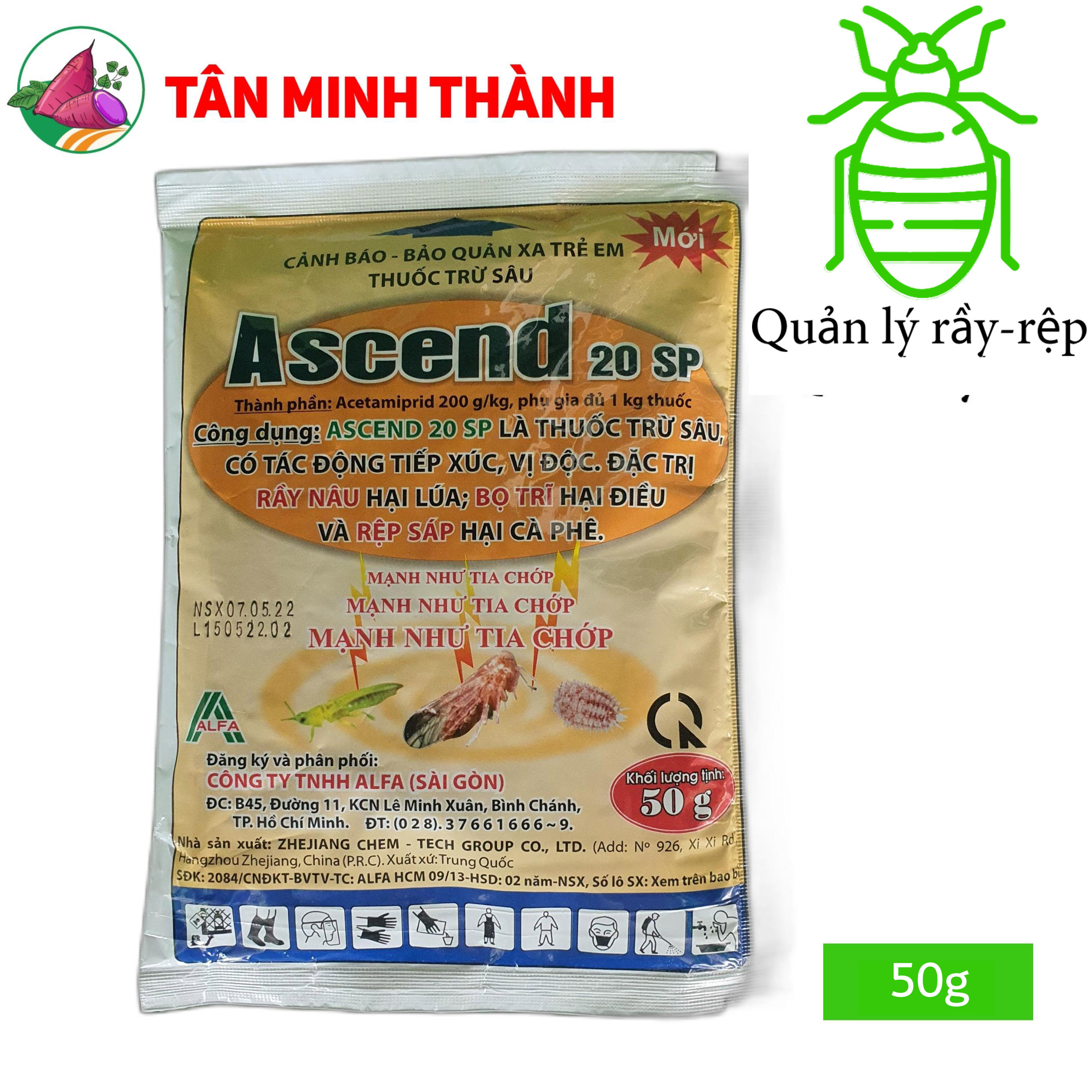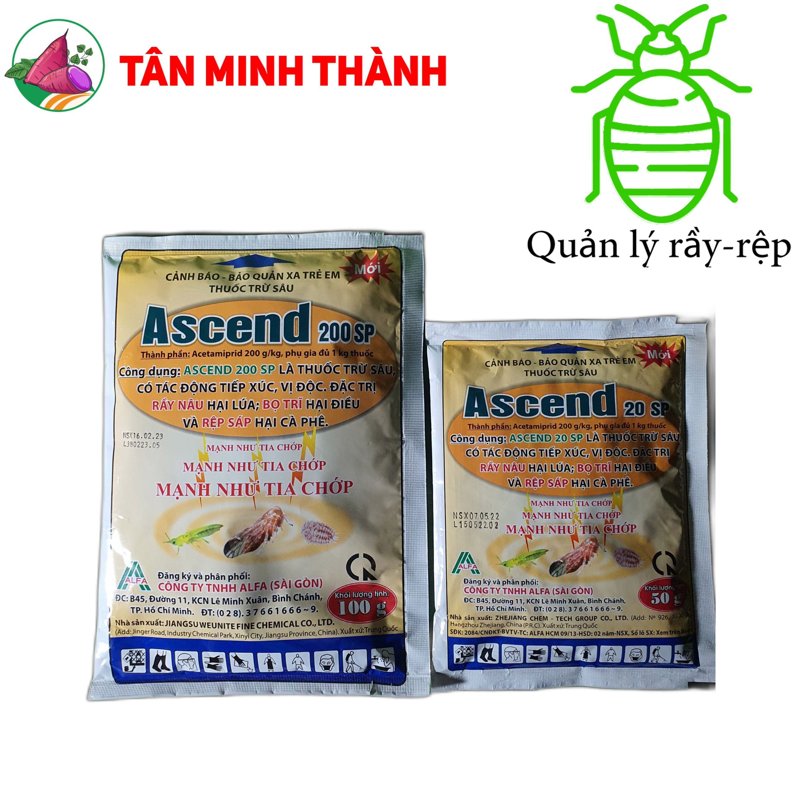 Ascend 20SP là thuốc đặc trị sâu rầy, có tác động tiếp xúc, vị độc. Quản lý rầy nâu hại lúa, bọ trĩ hại điều và rệp sáp hại cà phê.