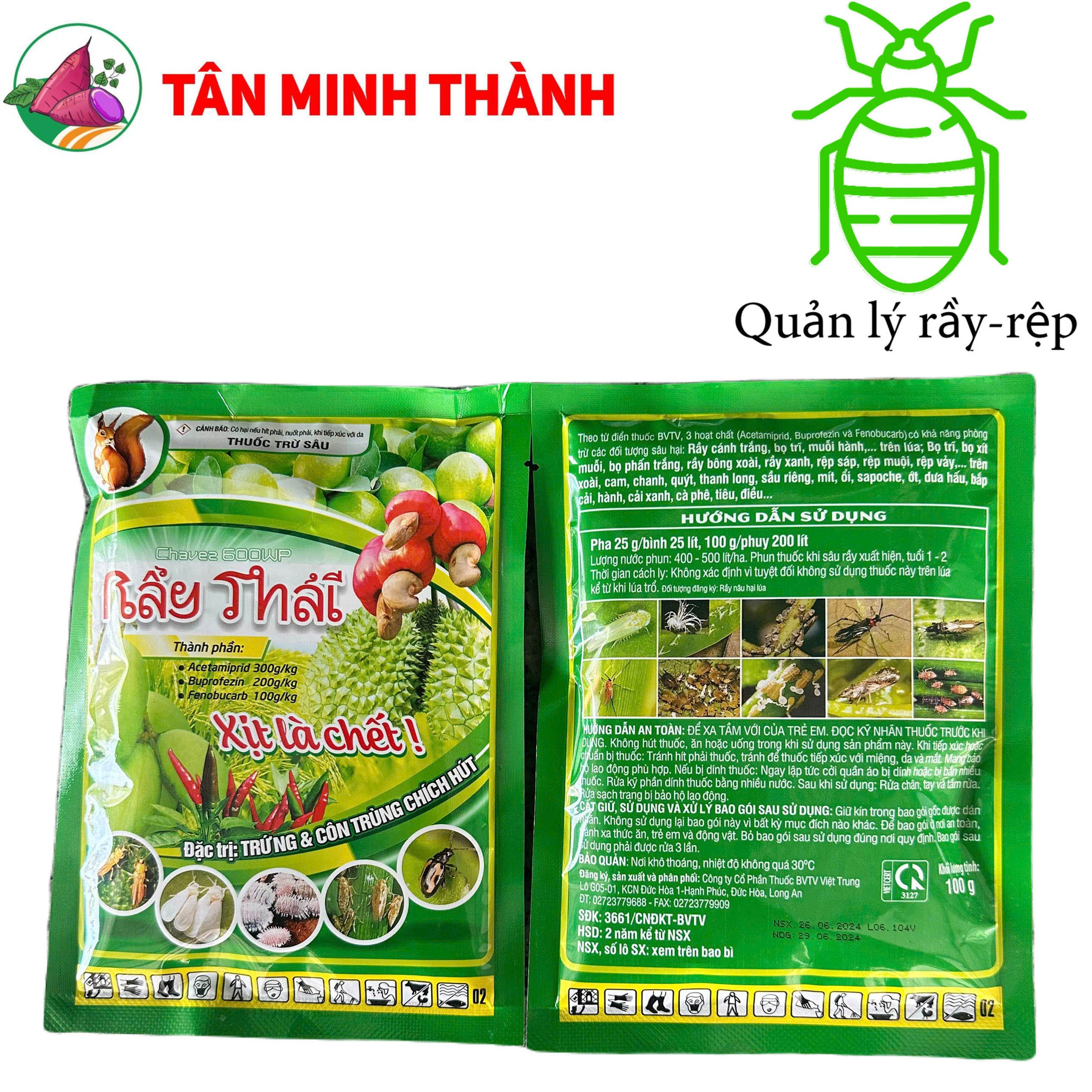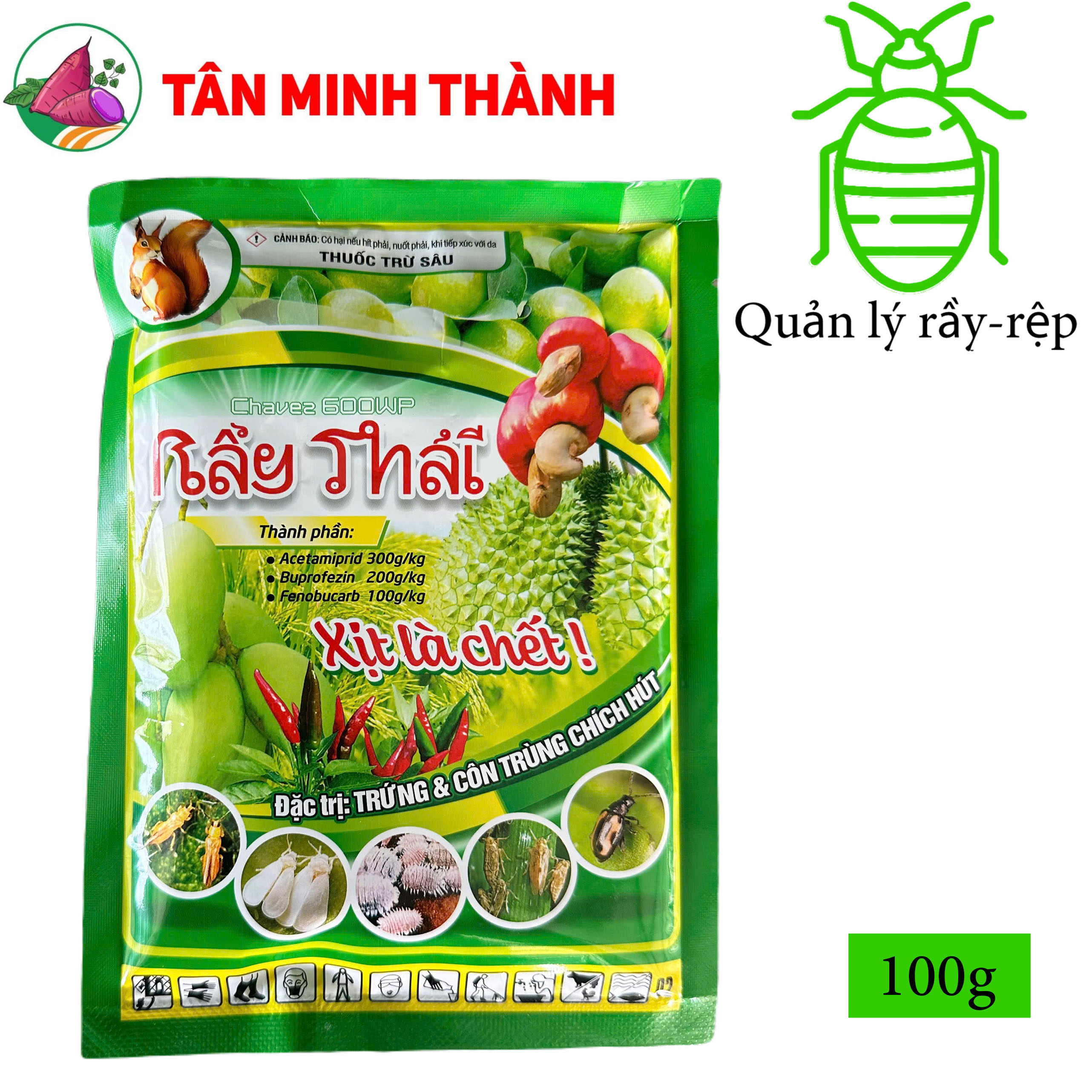 Chavez 600WP Rầy Thái là thuốc trừ rầy với sự kết hợp của 3 hoạt chất cực mạnh Acetamiprid, buprofezin và Fenobucarb có khả năng phòng trừ các đối tượng sâu hại như: Rầy cánh trắng, bọ trĩ, muỗi hành trên lúa, Bọ trĩ, bọ xít muỗi, bọ phấn trắng, rầy bông xoài, rầy xanh, rệp sáp, rệp muội, rệp vảy trên xoài, cam chanh quýt, thanh long, sầu riêng, mít, sapoche, ớt, dưa hấu, bắp, cải,hành, cải xanh, cà phê, tiêu điều.