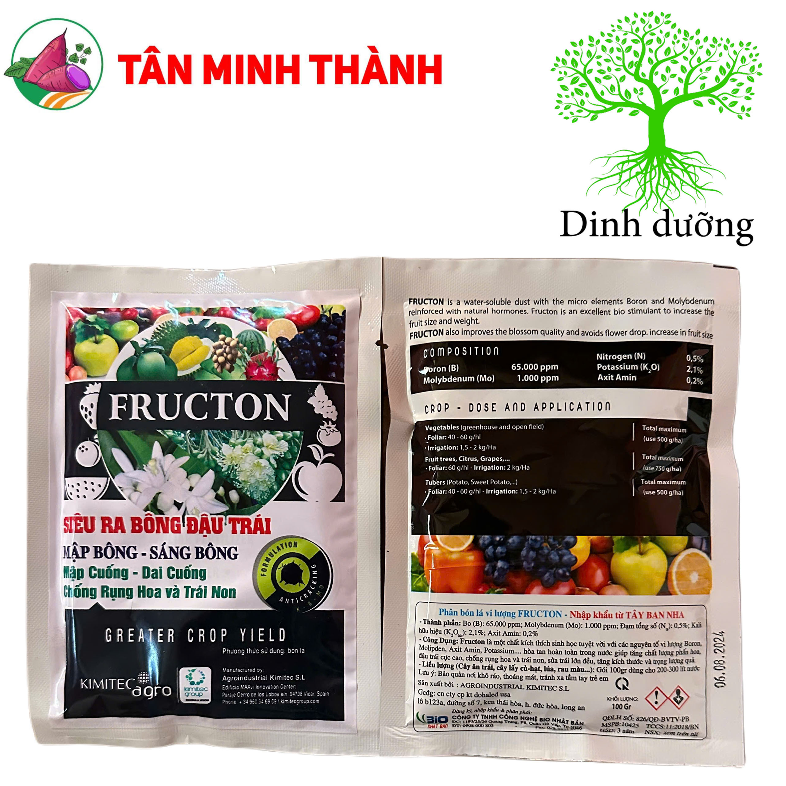 Fructon là một chất kích thích sinh học tuyệt với với các nguyên tố vi lượng Boron Molybdenm, Axit Amin, potassium... Hòa tan hoàn toàn trong nước giúp tăng chất lượng phấn hoa, đậu trái cự cao, chống rụng hoa và trái non, sửa trái lớn đều, tăng kích thước và trọng lượng quả.