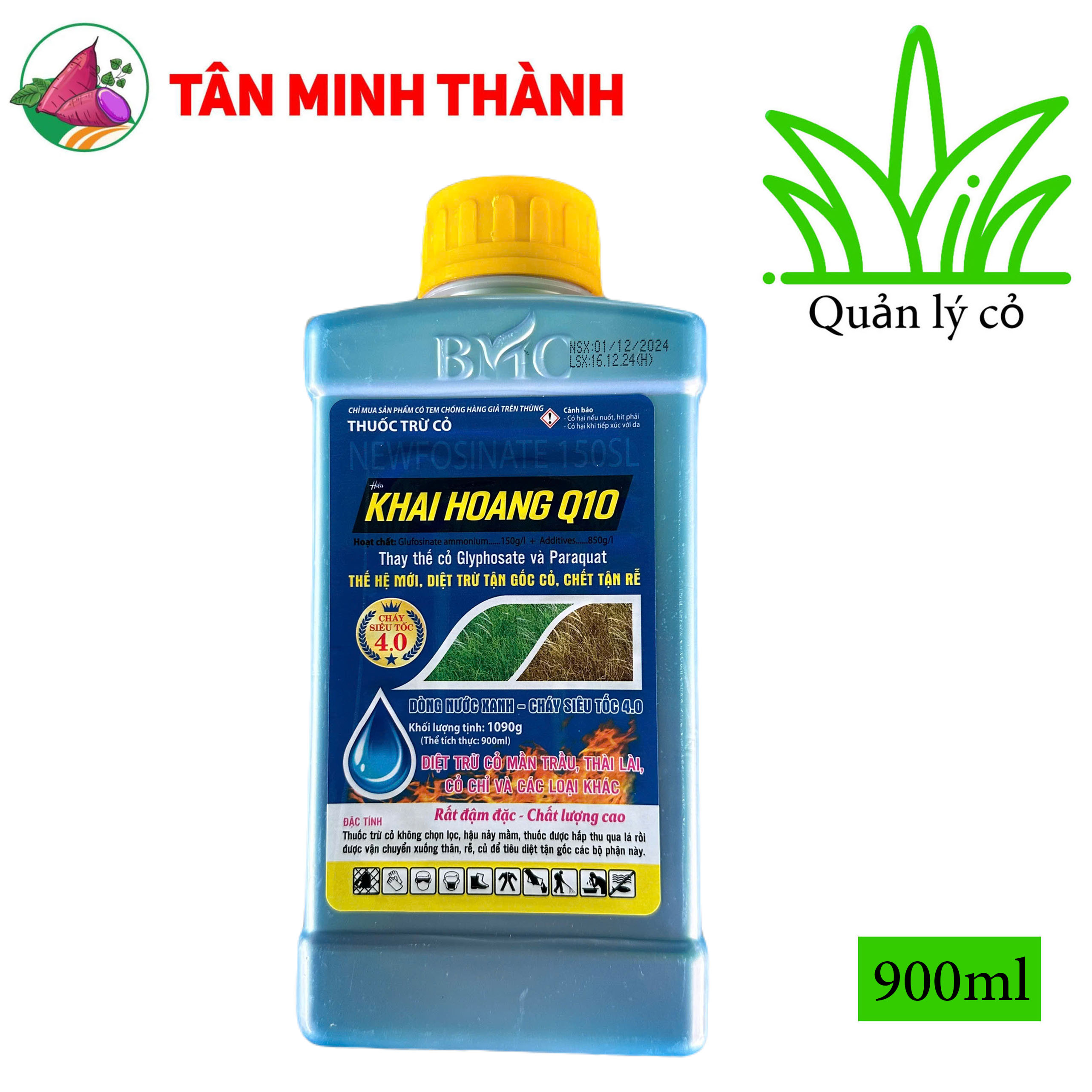 - Khai Hoang Q10 Sản phẩm quản lý cỏ không chọn lọc, hậu nảy mầm, sản phẩm được hấp thu qua lá rồi được vận chuyển xuống thân, rễ, củ để tquản lý tận gốc các bộ phận này. Glufosinate là một loại thành phần quản lý cỏ phổ rộng tự nhiên được sản xuất bởi một số loài vi khuẩn đất Streptomyces. Glufosinate là có tác dụng tiếp xúc, không chọn lọc, có tác dụng toàn thân.