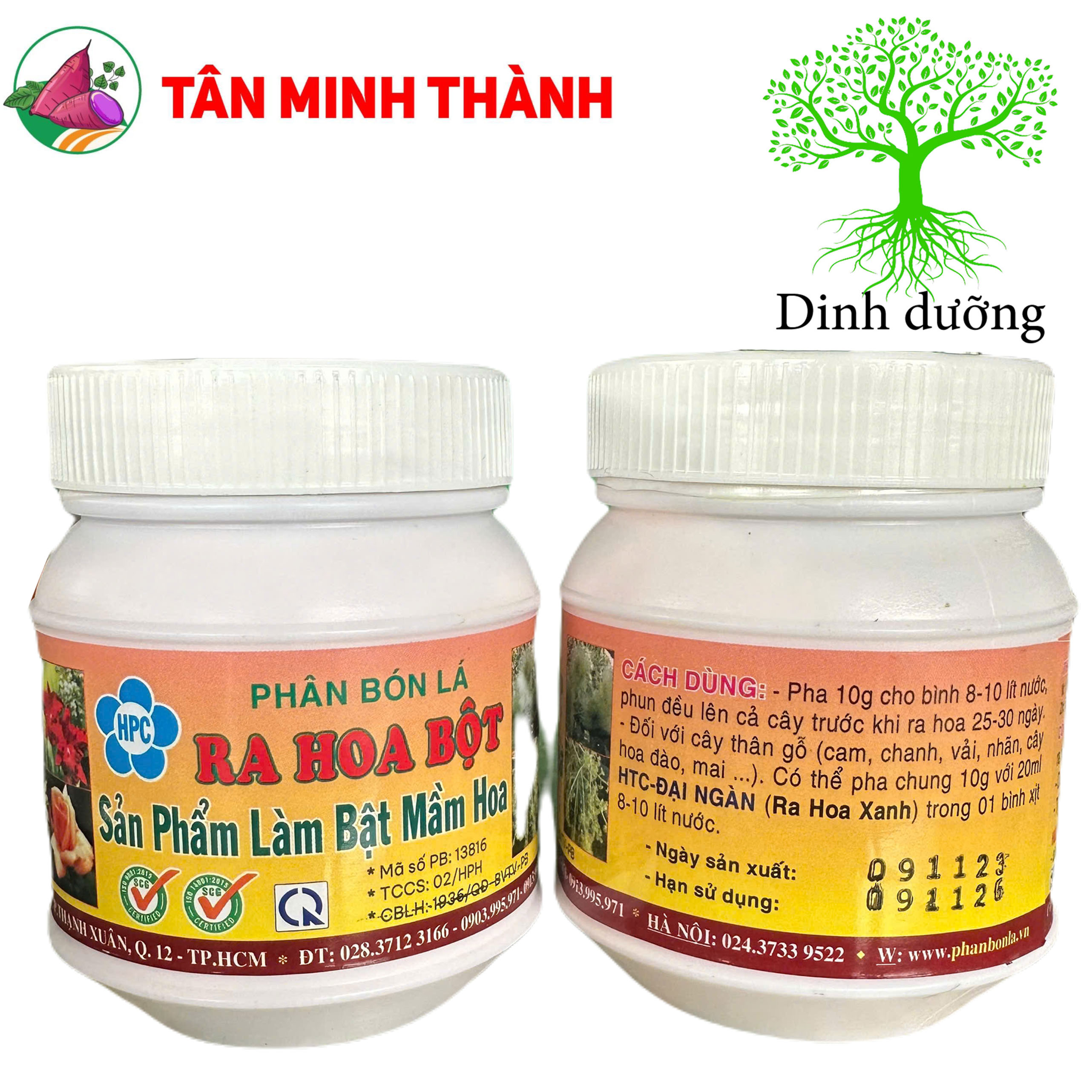 -Pha 10g cho bình 8-10 lít nước, phun đều lên cả cây trước khi ra hoa 25-30 ngày