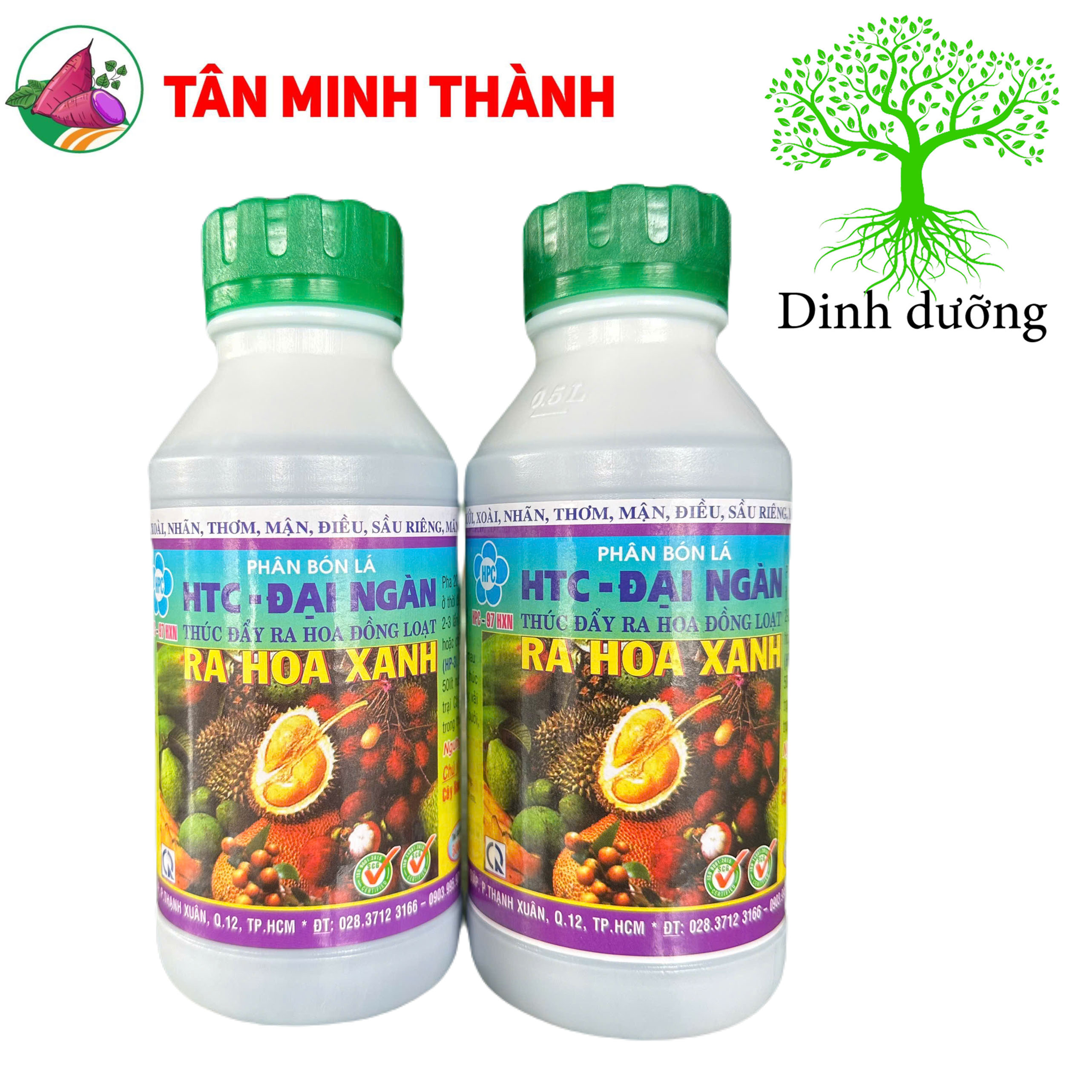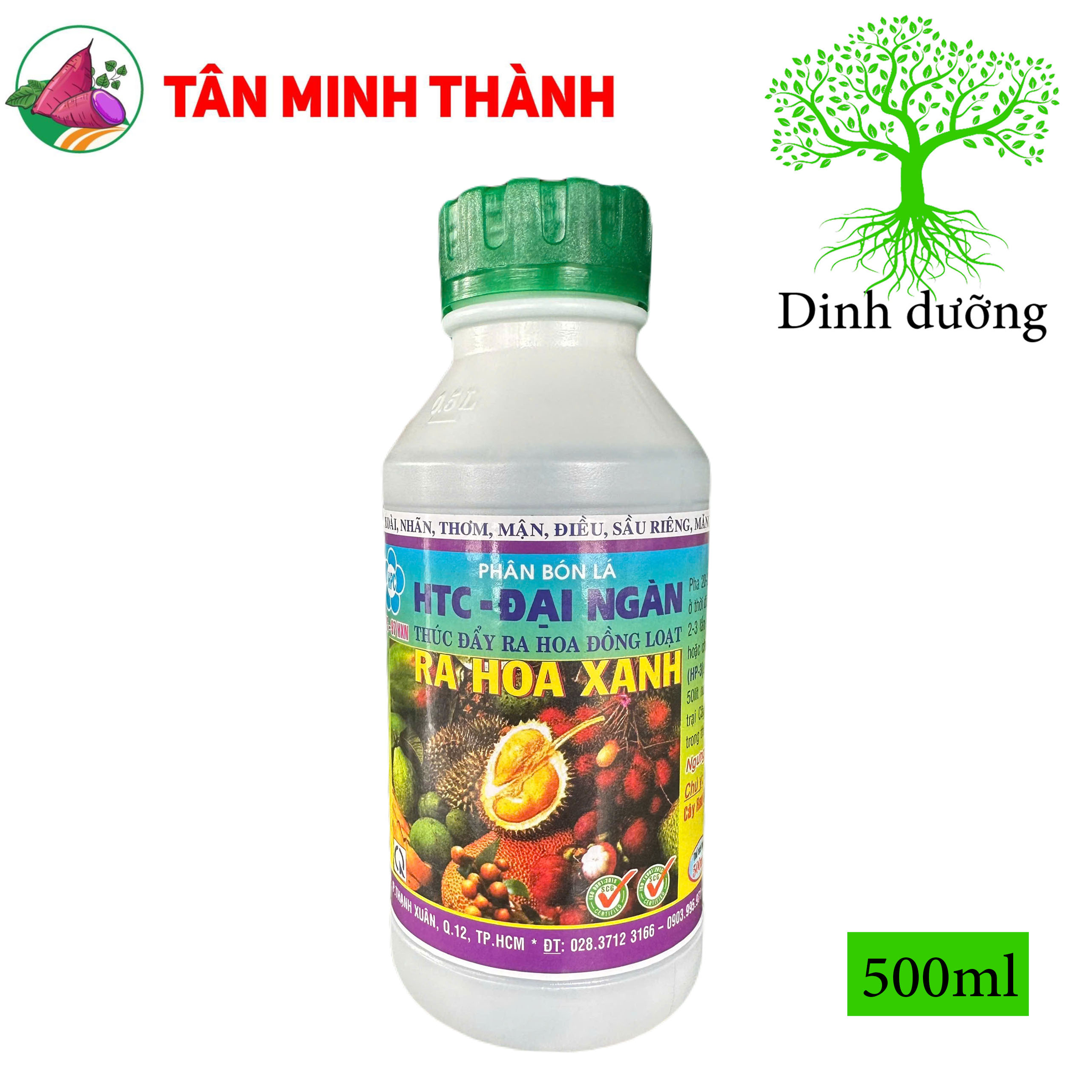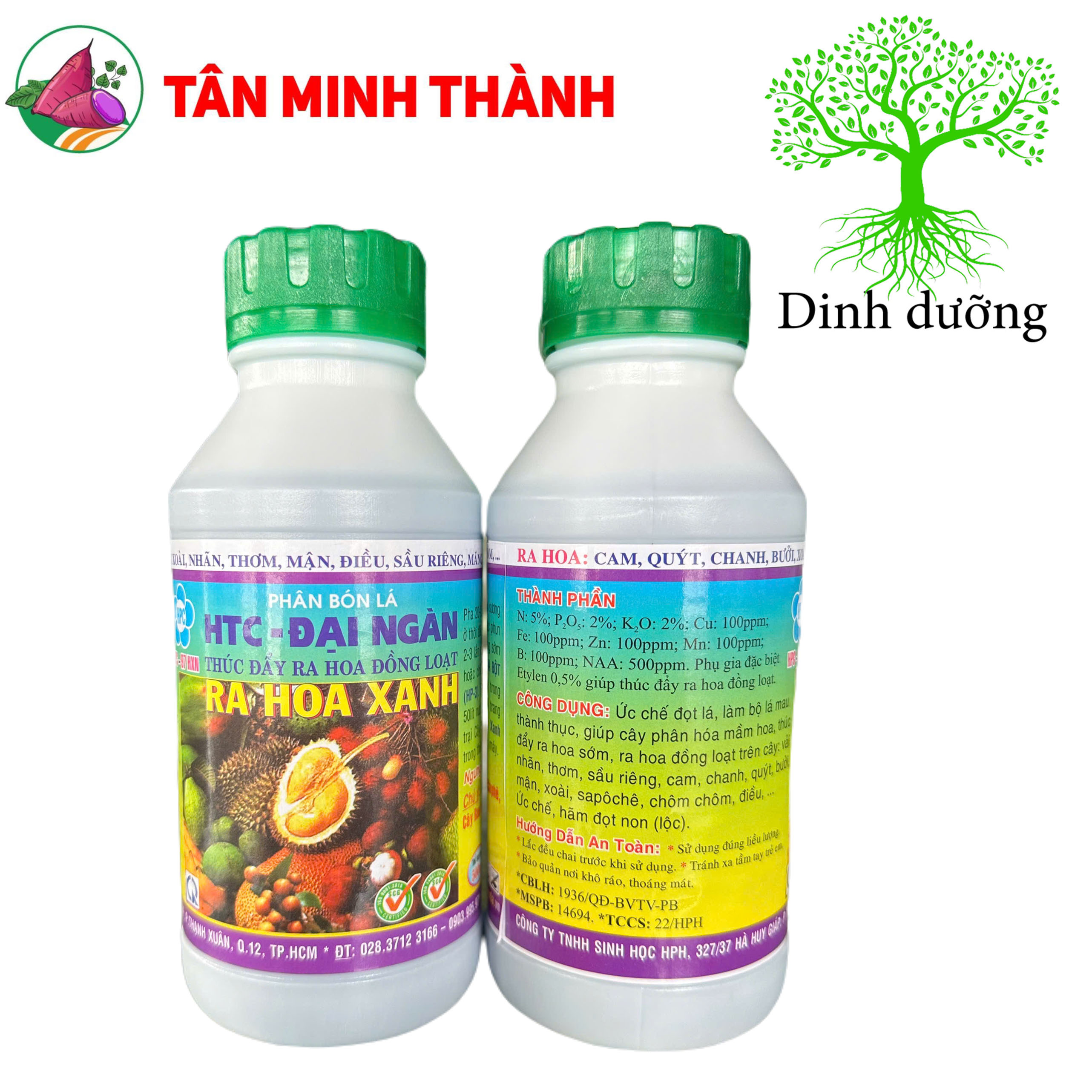 N: 5%; P,O,: 2%; K.O: 2%: Cu: 100ppm; Fe: 100ppm; Zn: 100ppm; Mn: 100ppm; B: 100ppm; NAA: 500ppm. Phụ gia đặc biệt Etylen 0,5% giúp thúc đây ra hoa đồng loạt.
