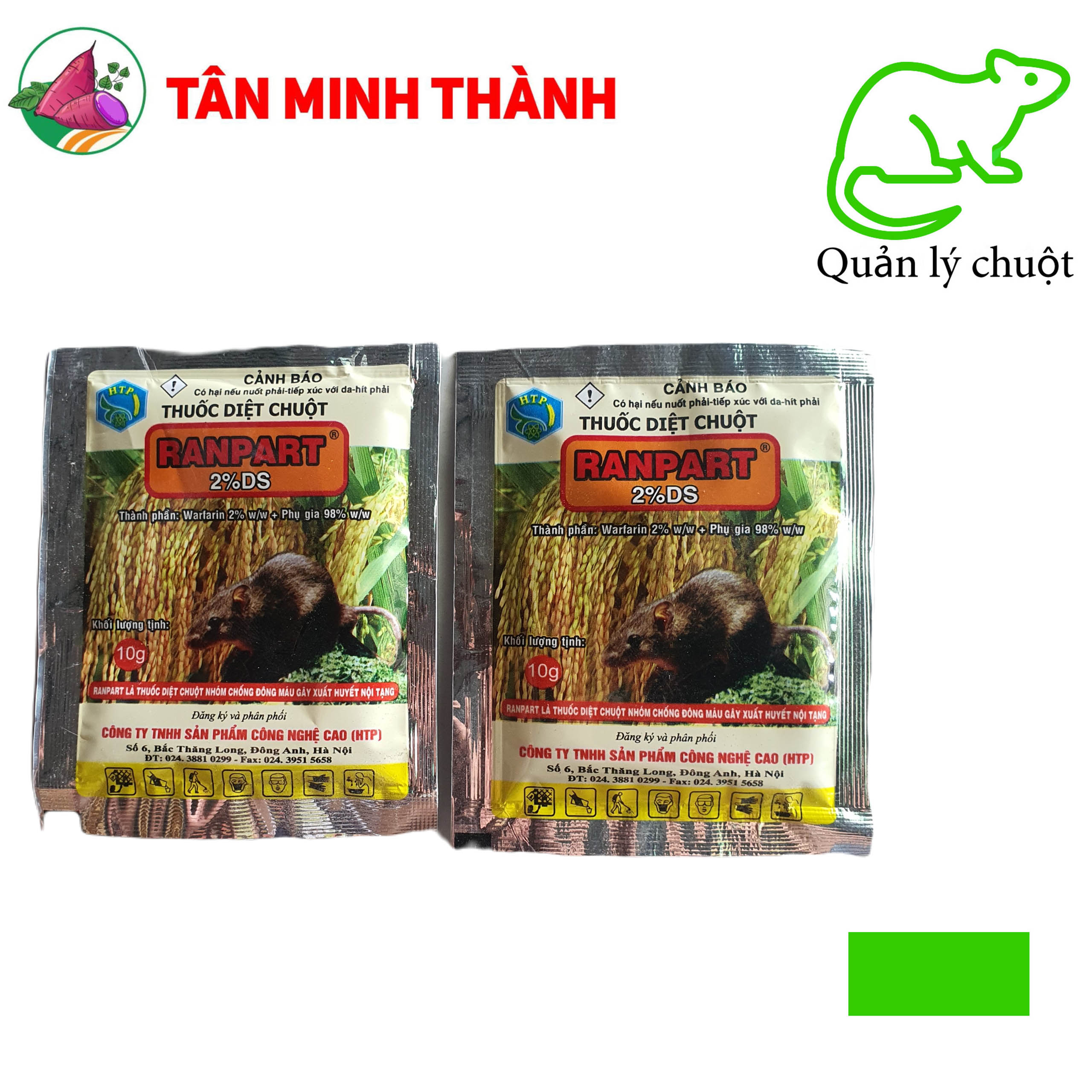 - Làm bả gói thuốc RANPART 2%DS 10 gram trộn với 250-350 gram mồi, mồi khi trộn phải đủ ẩm và trộn đều với thuốc.
