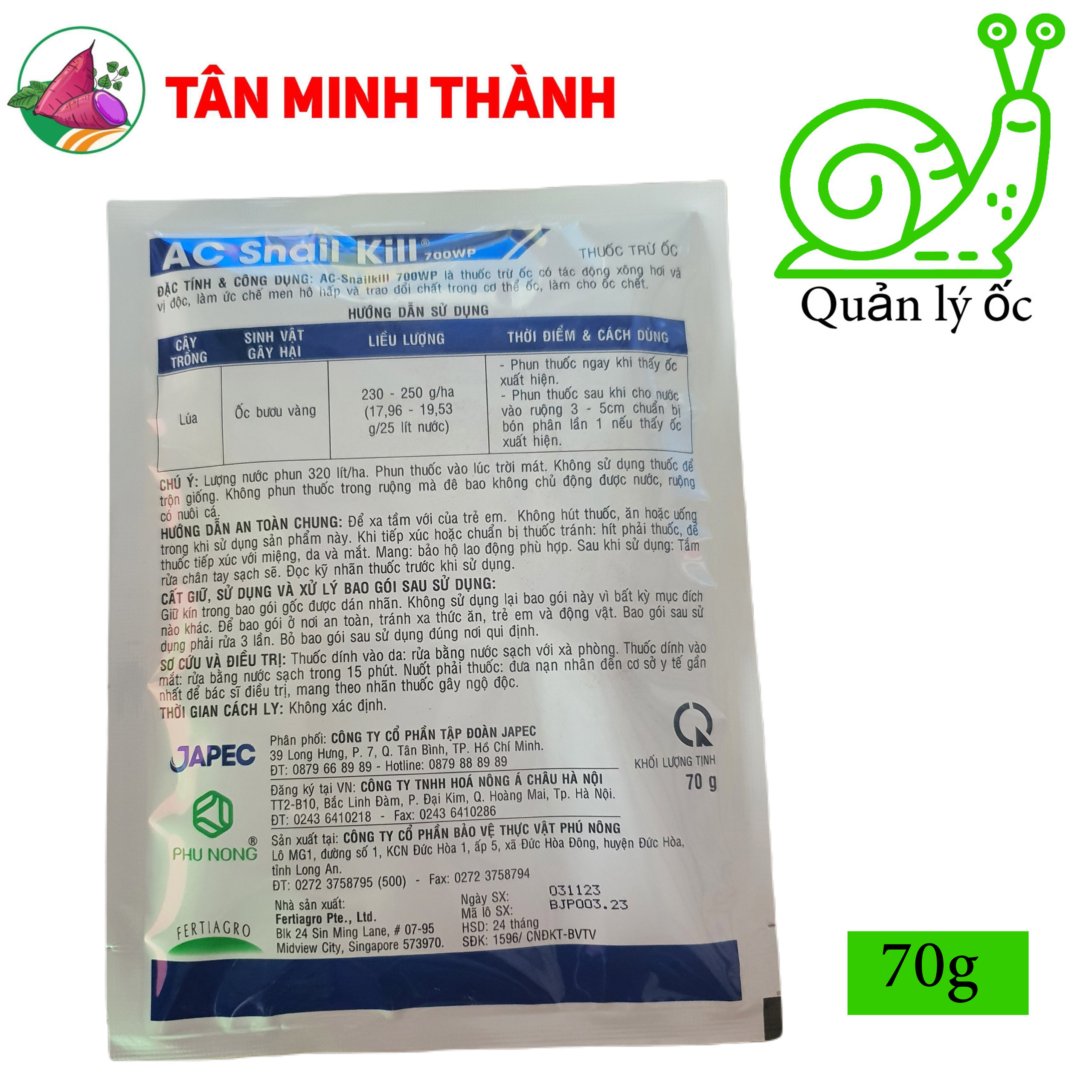 Snail Kill 700WP là thuốc trừ ốc bươu vàng có tác động xông hơi và vị độc, làm ức chế men hô hấp và trao đổi chất trong cơ thể ốc, làm cho ốc chết.