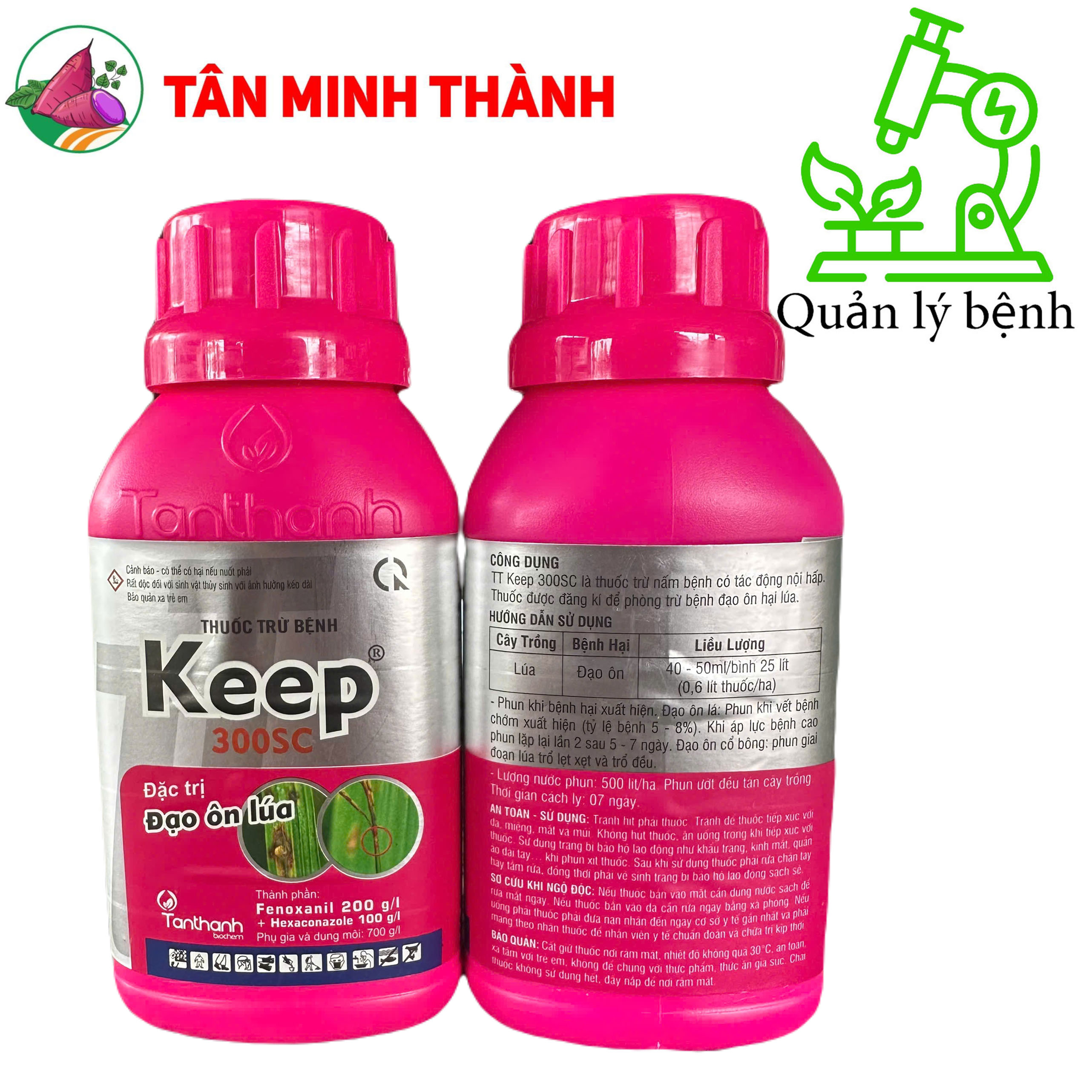 Công dụng: TT Keep 300SC là thuốc trừ nấm bệnh có tác động nội hấp. Thuốc được đăng kí để phòng trừ bệnh đạo ôn hại lúa.